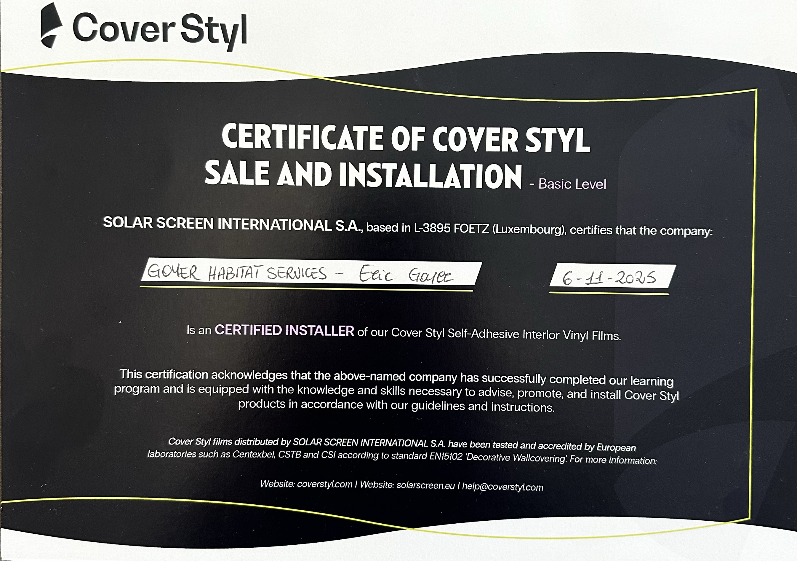 Cette formation atteste de ma capacité à conseiller et poser des revêtements adhésifs dans le respect des supports, des méthodes de pose et de la durabilité des matériaux.